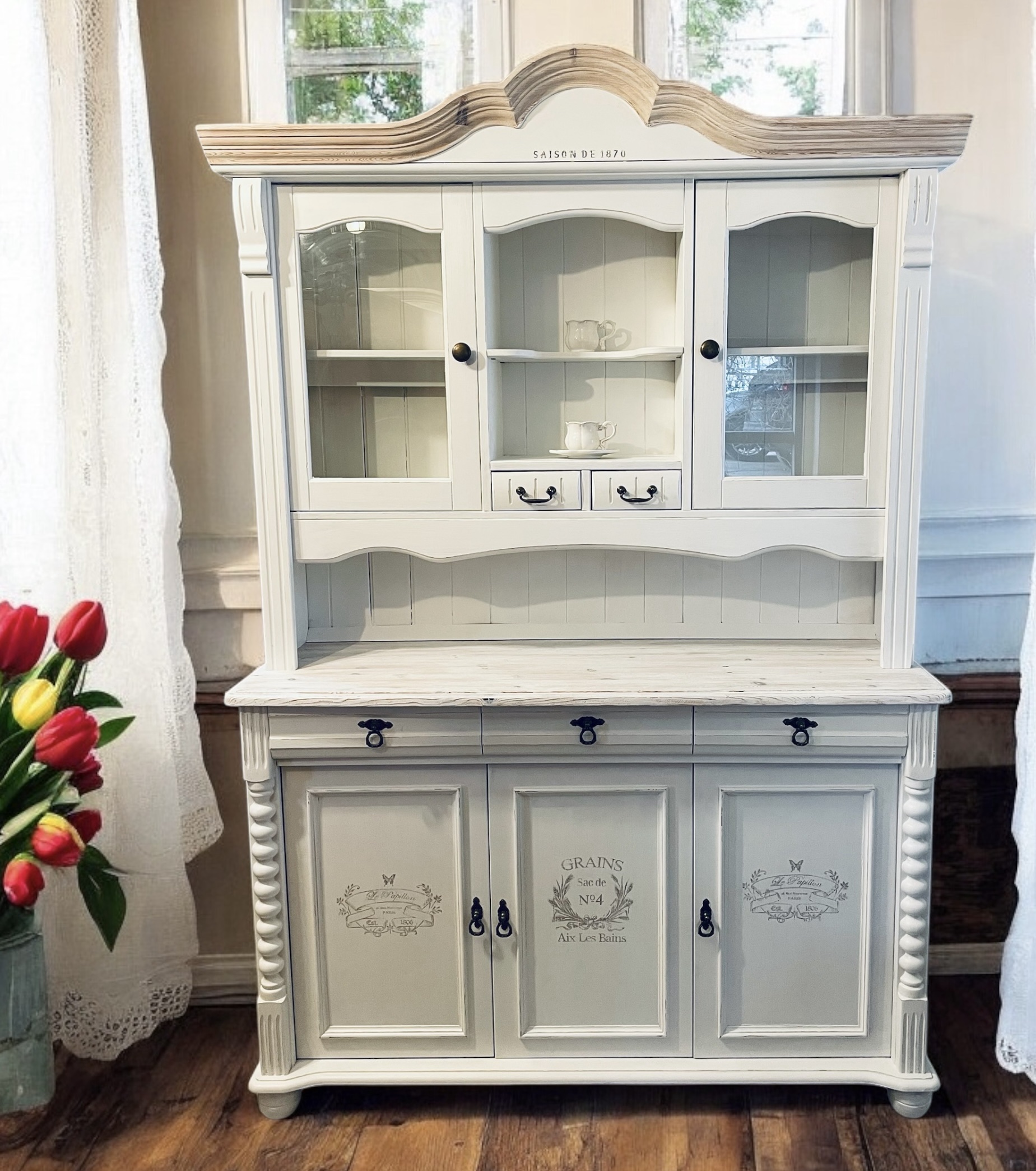 Romantyczny kredens, który łączy w sobie elegancję klasycznego designu z artystycznym wykończeniem. Ten wyjątkowy mebel został ręcznie malowany i stylizowany w mojej pracowni Ma Maison, co czyni go nie tylko funkcjonalnym, ale także unikalnym meblem. Nadałam mu charakter francuski z nutą vintage.